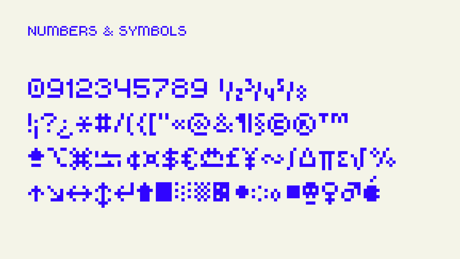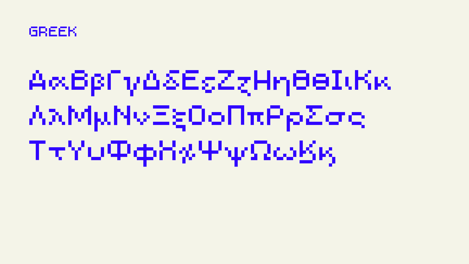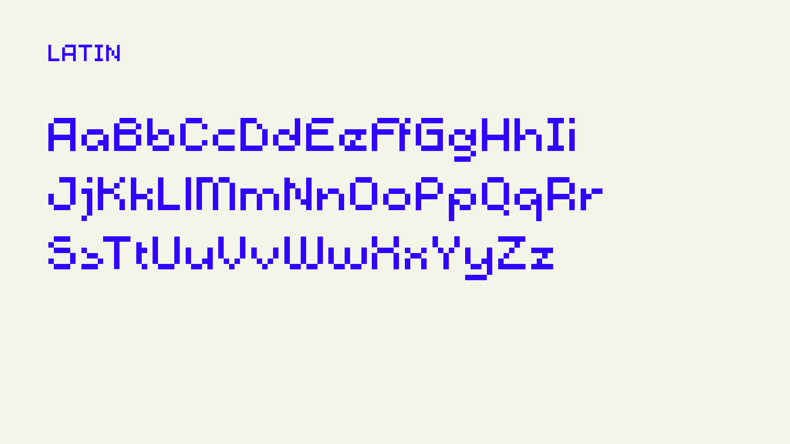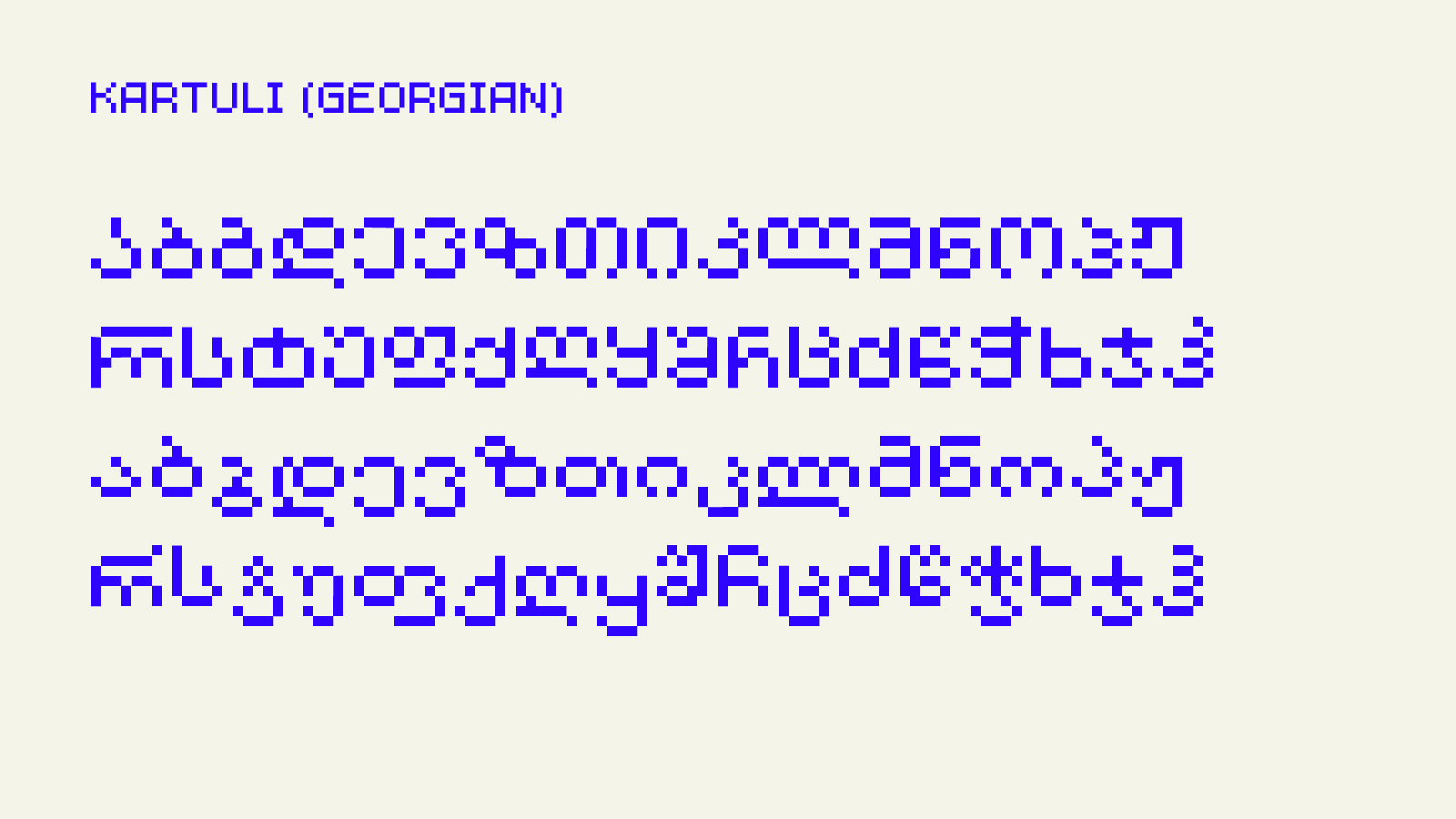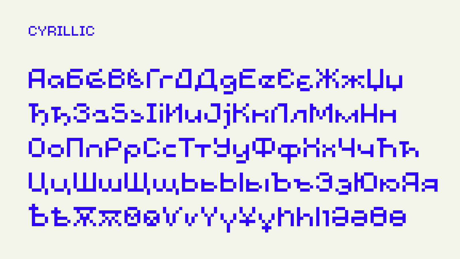 Programma is a unique pixel-style display font that supports Latin, Cyrillic, Greek, and Georgian alphabets. Its distinctive design makes it ideal for digital and retro-themed projects, offering clear readability across multiple languages. Perfect for adding a creative touch to your text while maintaining versatility.